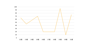 縦軸にモチベーション・横軸に年齢を設定して、モチベーション曲線を書く