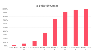 続いて、面接対策を始めた時期については、大学3年の冬(3年生の1月~3月)時点では70%以上の学生が対策を始めていることがわかりました。面接が本格化する時期に合わせて対策をすすめる学生が多くなってきているのかもしれません。